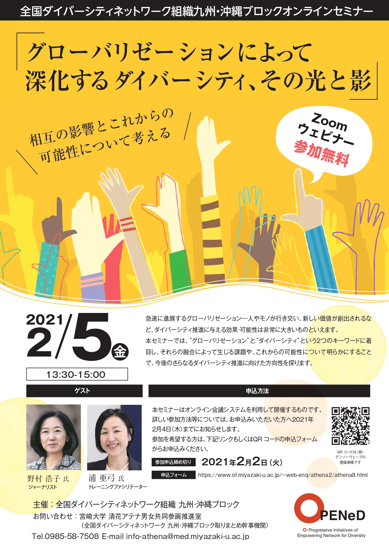 - 【2/5開催】全国ダイバーシティネットワーク組織 九州・沖縄ブロックオンラインセミナーのお知らせ