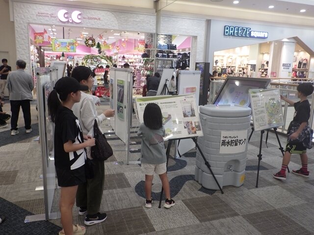 ④ 雨水貯留タンクの展示と流域治水の説明パネル