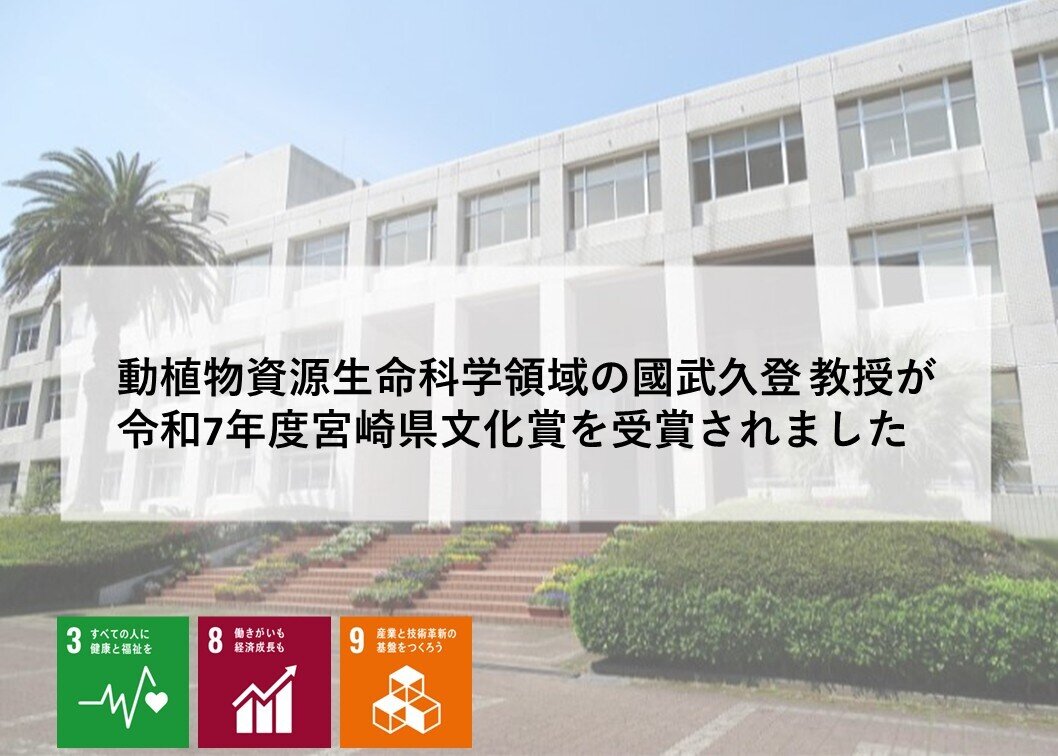 動植物資源生命科学領域の國武久登 教授が令和7年度宮崎県文化賞を受賞されました