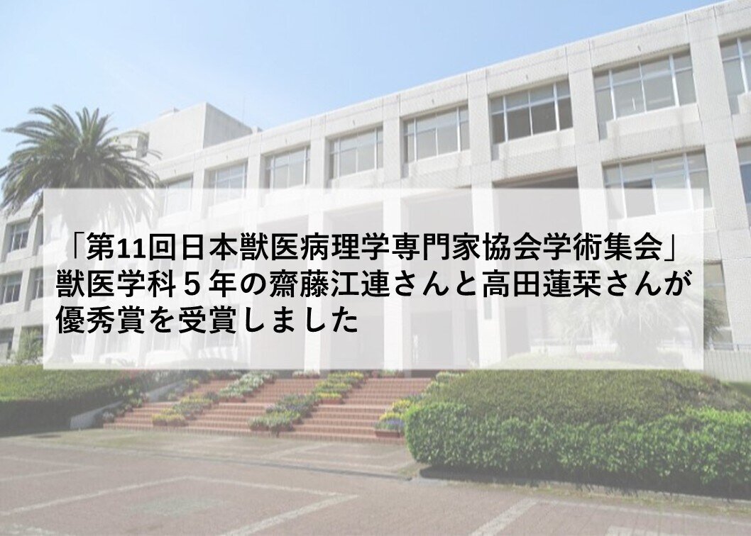 「第11回日本獣医病理学専門家協会学術集会」で獣医学科5年の齋藤江連さんと高田蓮栞さんが優秀賞を受賞しました