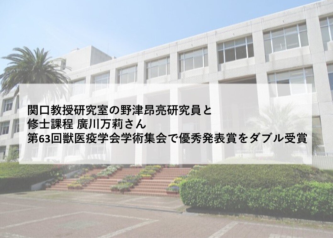 関口教授研究室の野津昂亮研究員と修士課程 廣川万莉さん、第63回獣医疫学会学術集会で優秀発表賞をダブル受賞