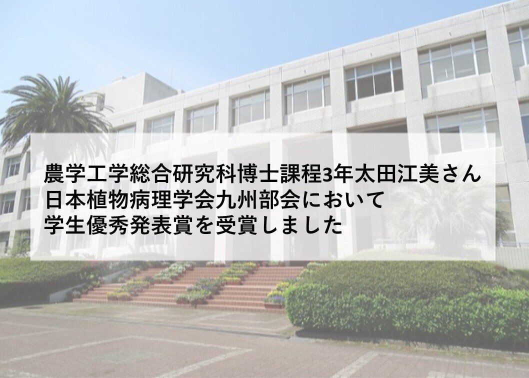 農学工学総合研究科博士課程3年の太田江美さんが日本植物病理学会九州部会において学生優秀発表賞を受賞しました