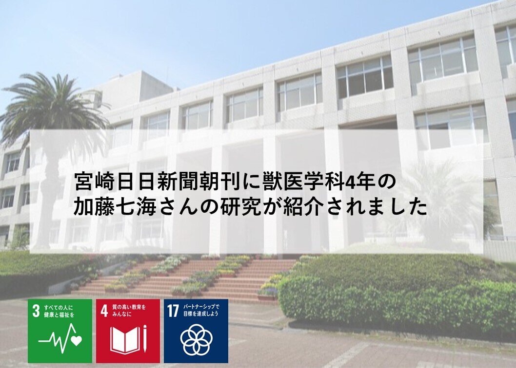 宮崎日日新聞朝刊に獣医学科4年の加藤七海さんの研究が紹介されました