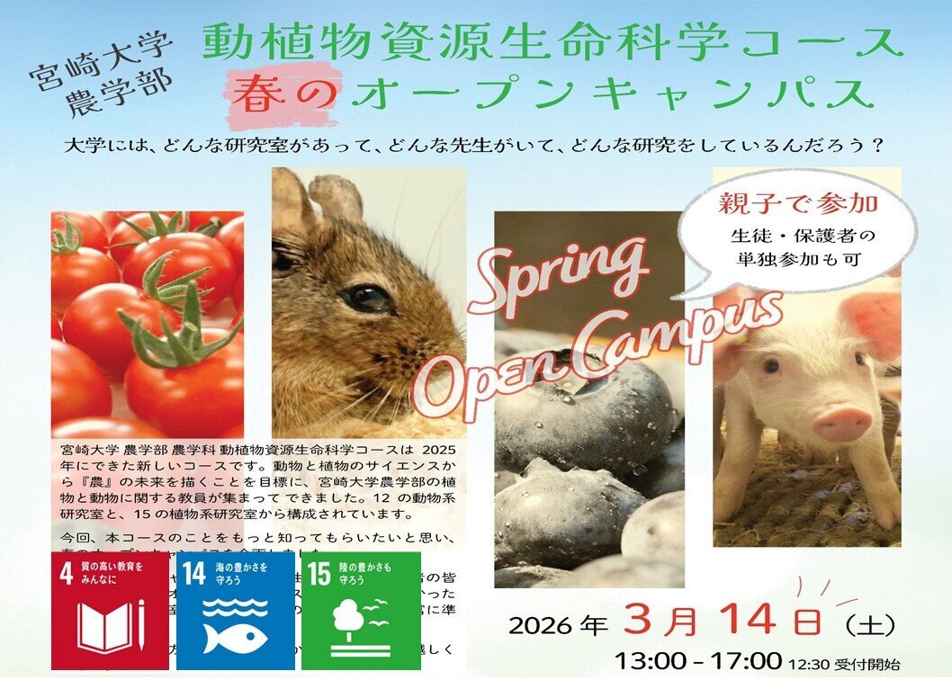 宮崎大学農学部 動植物資源生命科学コース「春のオープンキャンパス」を開催!