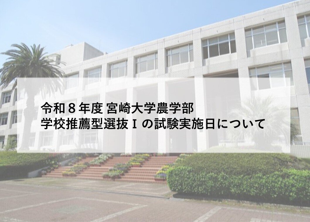 令和8年度 宮崎大学農学部学校推薦型選抜Ⅰの試験実施日について