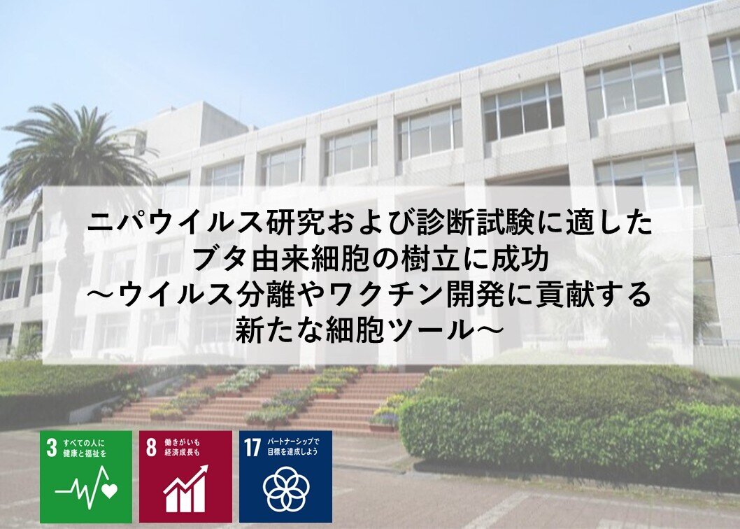 ニパウイルス研究および診断試験に適したブタ由来細胞の樹立に成功 ~ウイルス分離やワクチン開発に貢献する新たな細胞ツール~