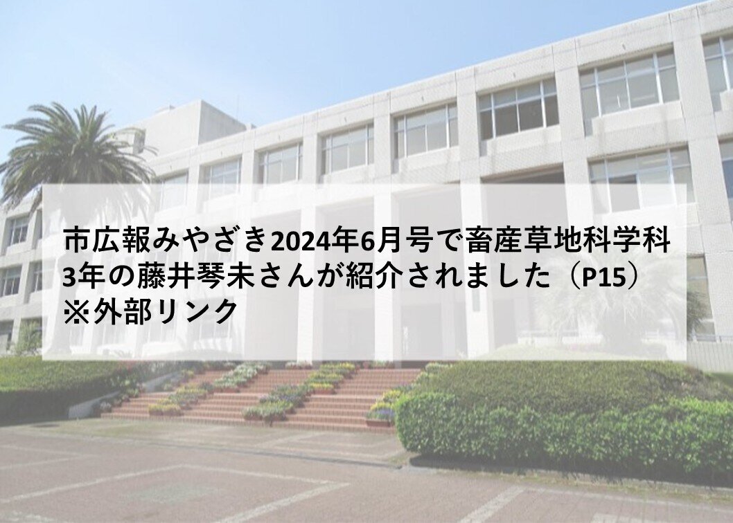市広報みやざき2024年6月号で畜産草地科学科3年の藤井琴未さんが紹介されました (P15) ※学外リンク