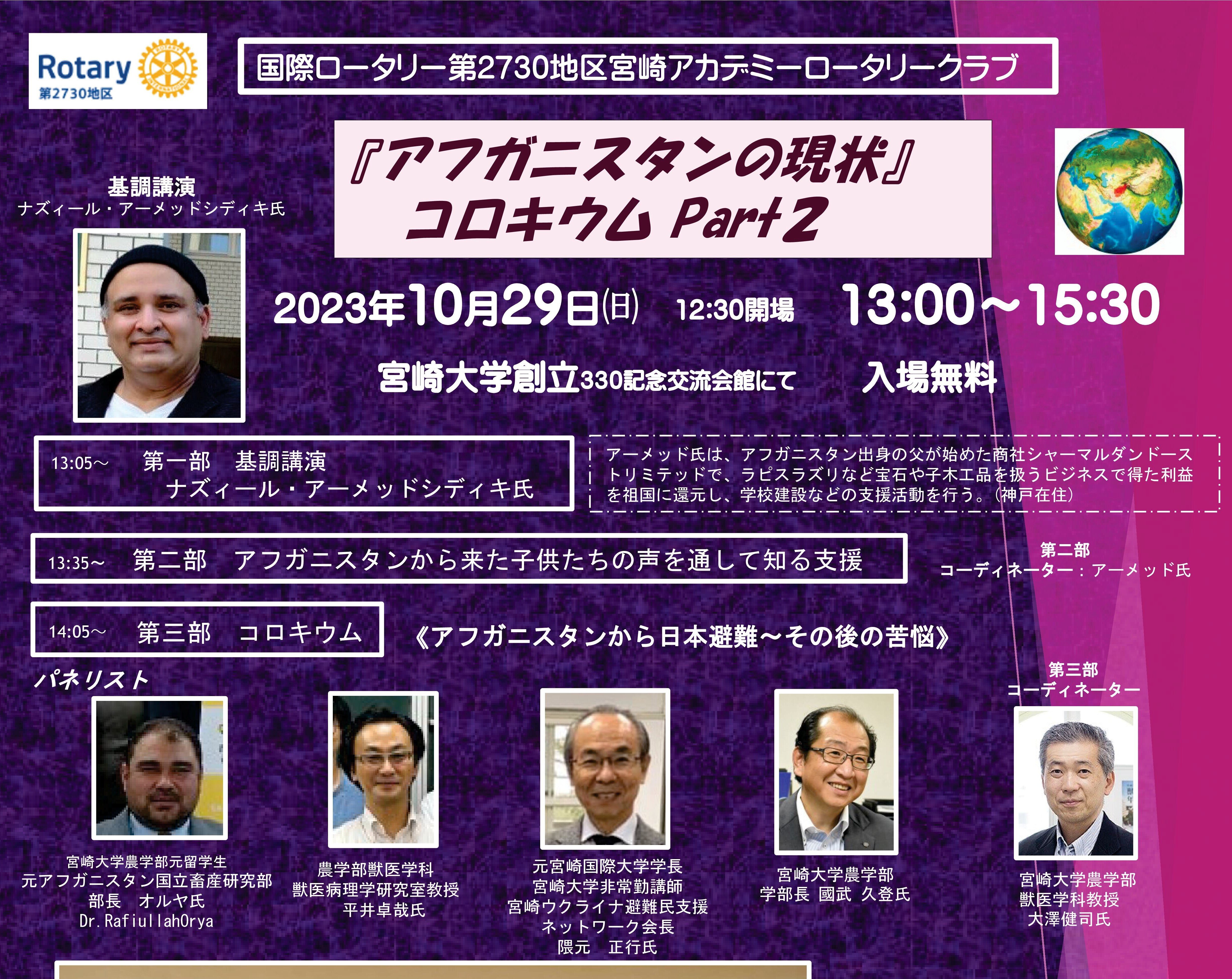 宮崎アカデミーロータリークラブ主催、宮崎大学共催の「アフガニスタンの現状 コロキウムPart2」が開催されました