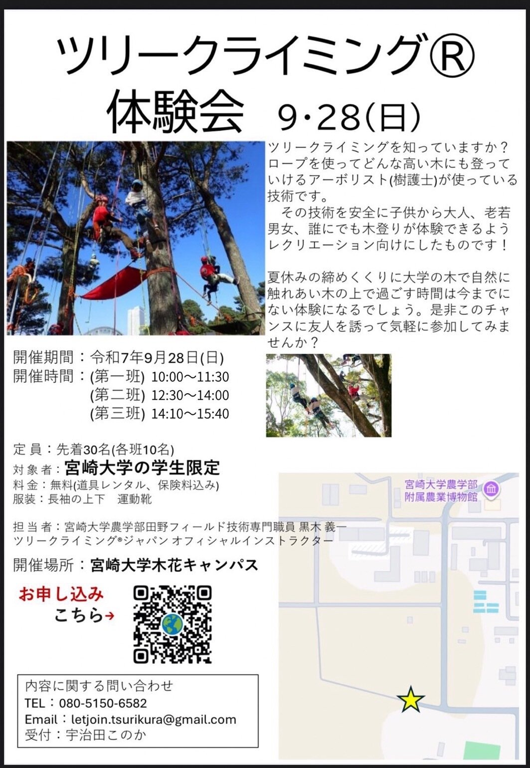 【宮崎大学 学生限定企画!】ツリークライミング®体験会のご案内