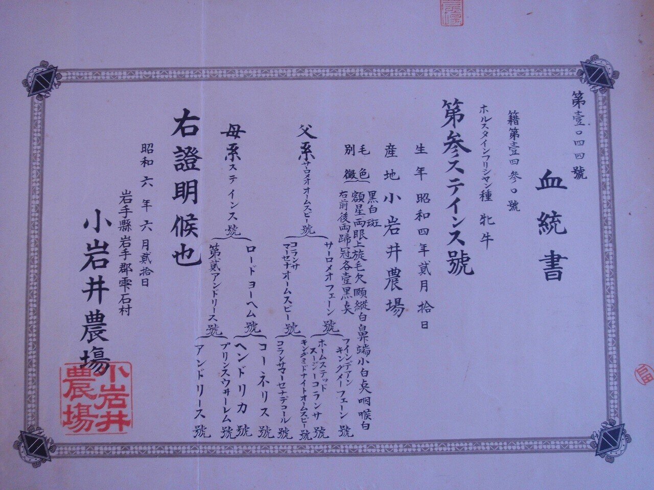 搾乳機を4機導入。全国で4番目となる、機械搾乳を実践する牧場となった。また、改良のためホルスタイン種高等登録雌牛3頭を静岡県の酪農家より購入。 |