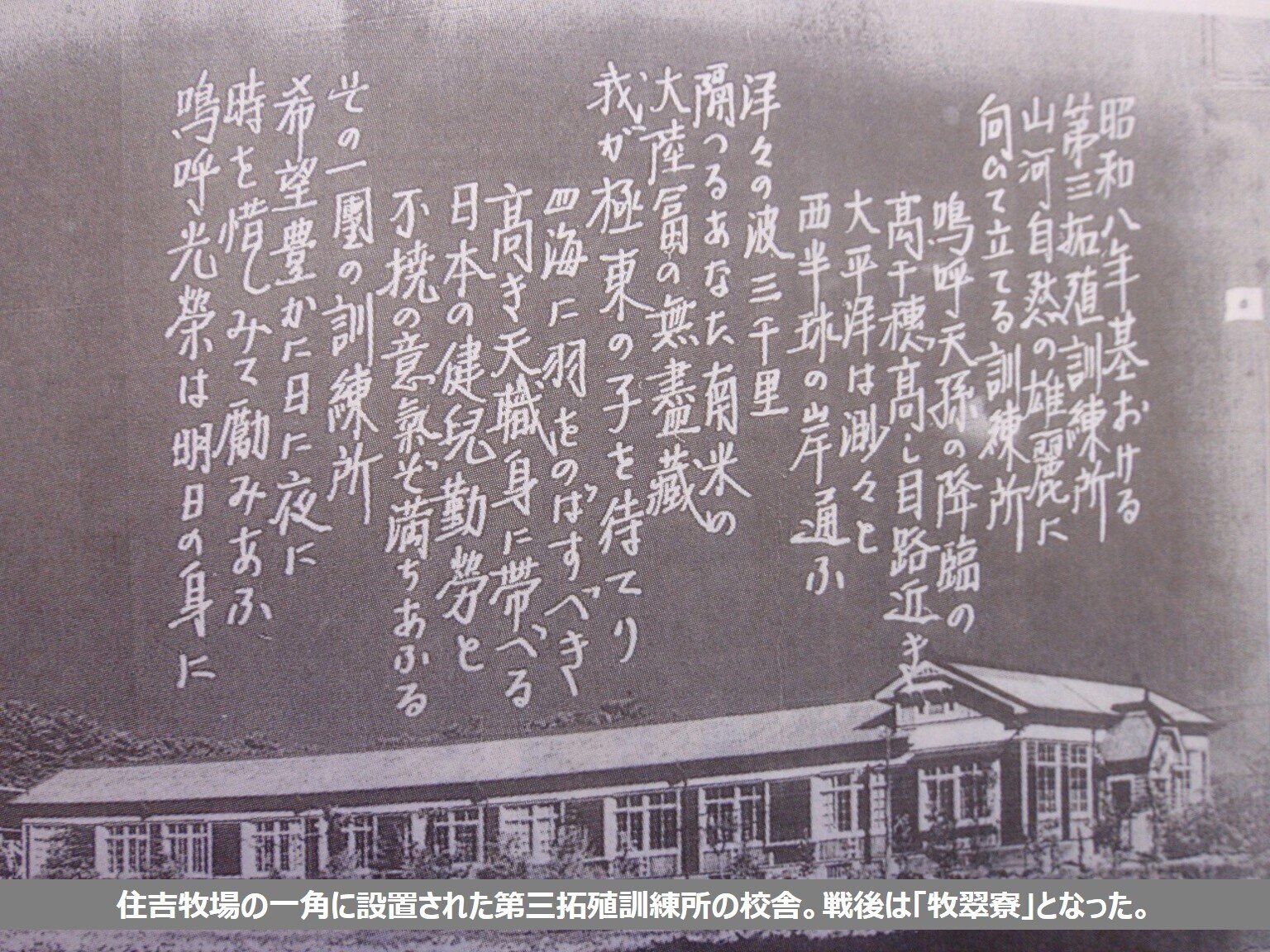 第三拓殖訓練所の教室、事務室、寄宿舎などを牧場内に新築。 |