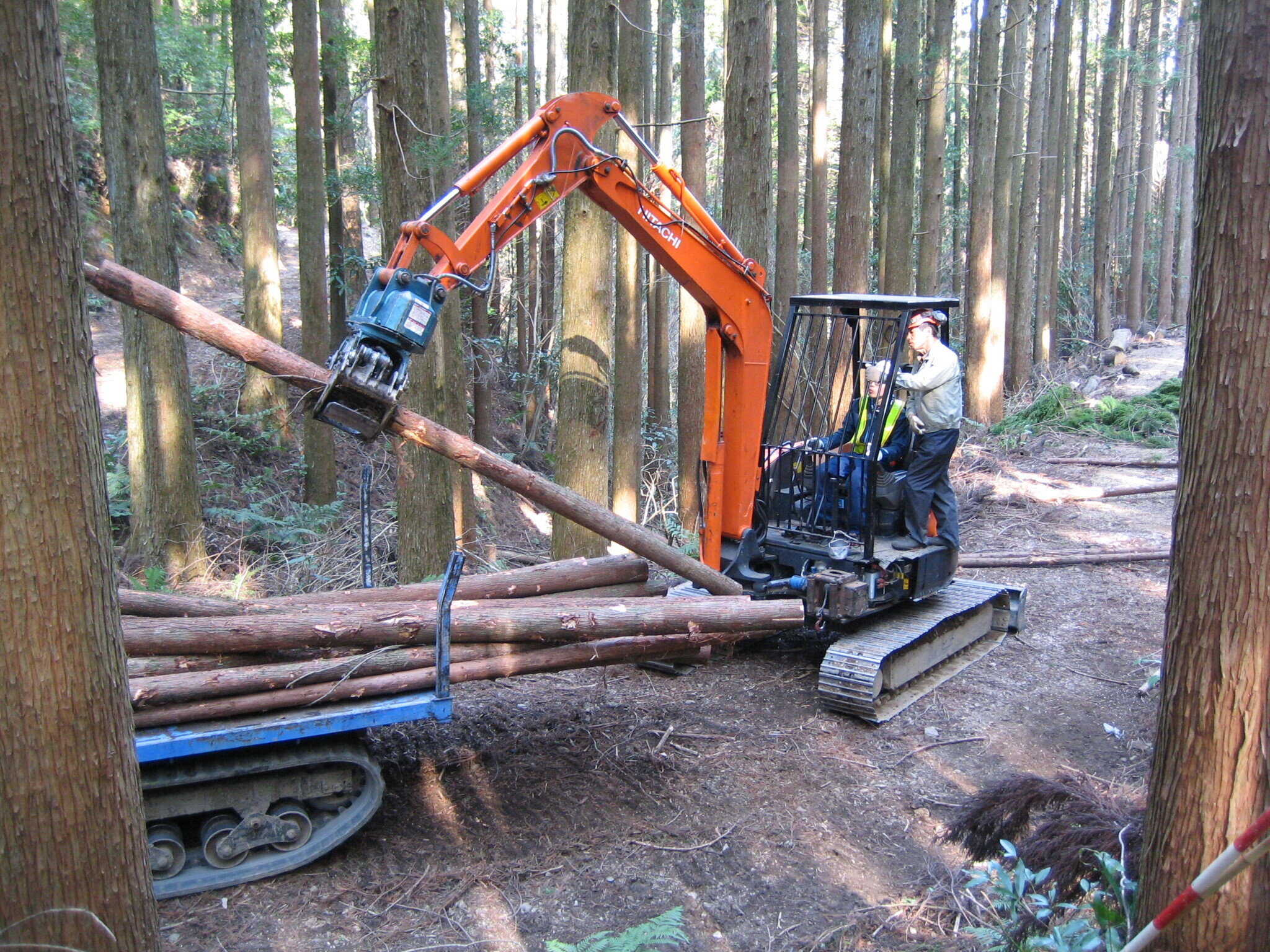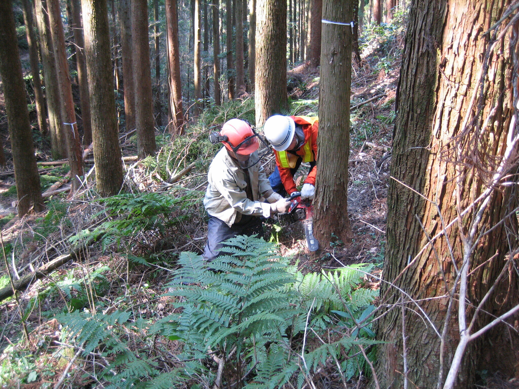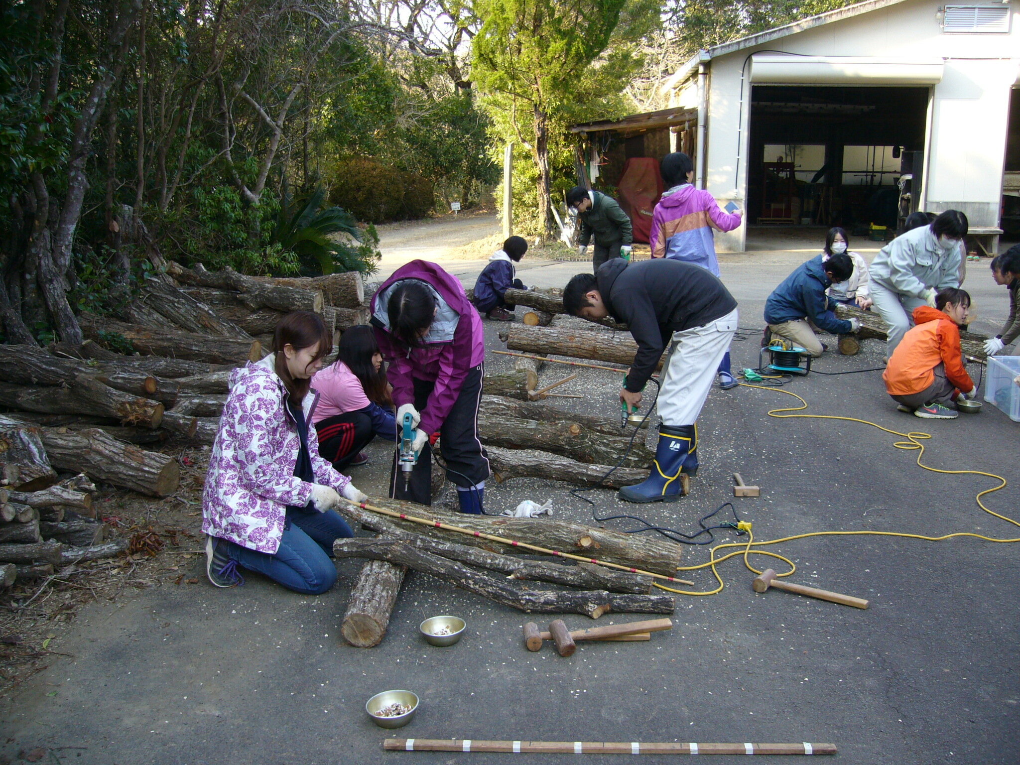 林業機械による集材、搬出作業やシイタケ原木の駒打ち体験は大学の実習ではなかなか行われないようで、受講生にとって貴重な体験のできる実習となっているようです。
