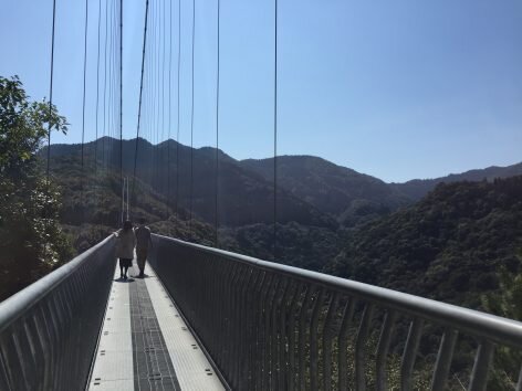 その後、照葉大橋に行きました。つり橋からは照葉樹林の景観をみることができます。
