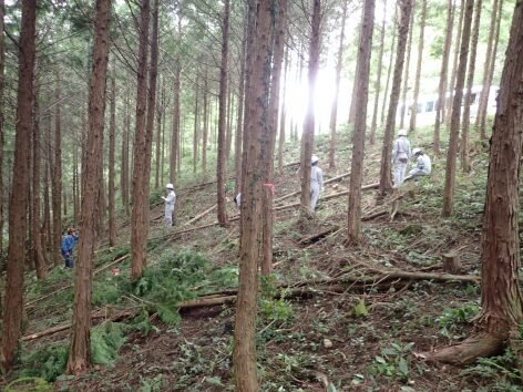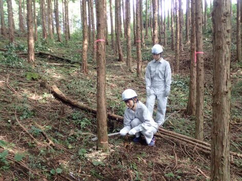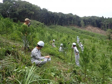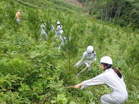 まずは、林業体験です。内容は下刈りと間伐の体験です。