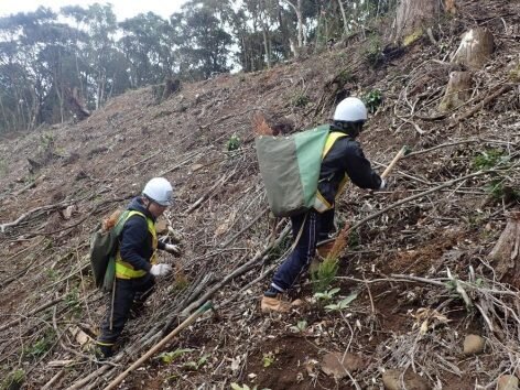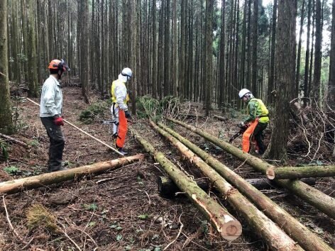 この日の午前中は天気が悪く、本格的な林業作業を午後にまわし様子を見ていたのですが、午後からは天気が回復し、怪我もなく無事に作業体験行うことができて、安心しました。