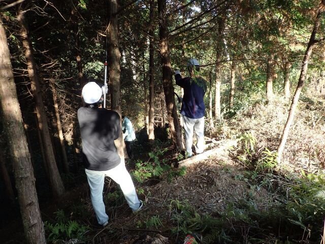 毎年ご利用いただいている南九州大学の自然観察実習です。11月25日に行われました。今年は人数が少なめだったのですが,天気も良く例年通り間伐と枝打ちを体験してもらいました。