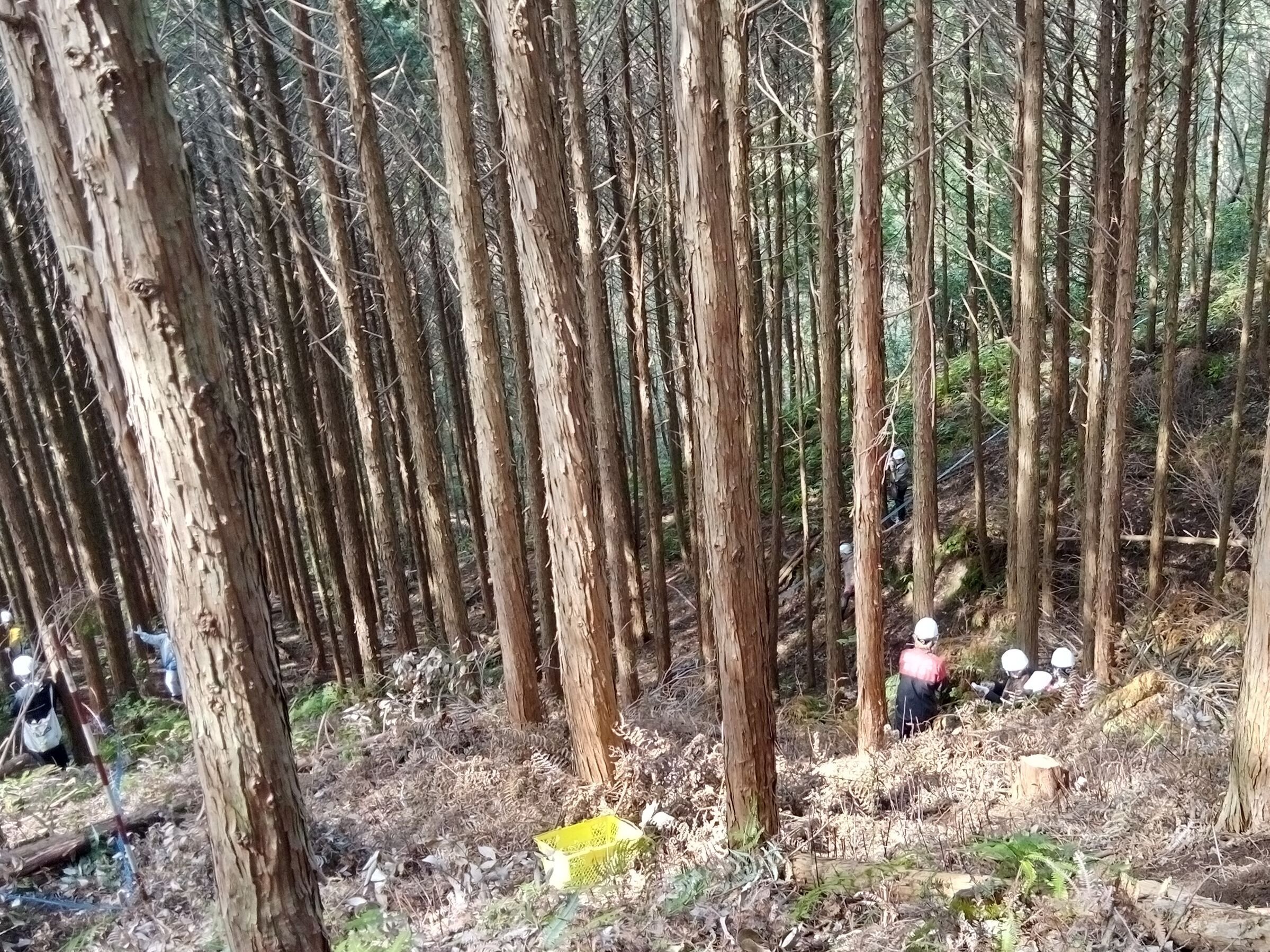 令和5年度の熊本県立大学の実習は,担当の先生が替わったことにより,今までの夏休みからかわって春休みに行われました。1日目は常緑広葉樹の採取と同定,2日目は人工林調査,伐採,植栽と枝打ちの林業体験コース,3日目はあいにくの雨で,シイタケコマ打ち,円盤読みと前日撮影したOWLのデモでした。森林管理に興味を持ってもらって林業職公務員に一人でも進む人がいるとうれしいです。
