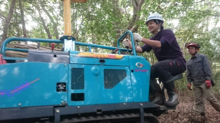 移動の際の小型のフォワーダーの操縦は職員さんの指導のもと学生さんが率先して行ってくれました。