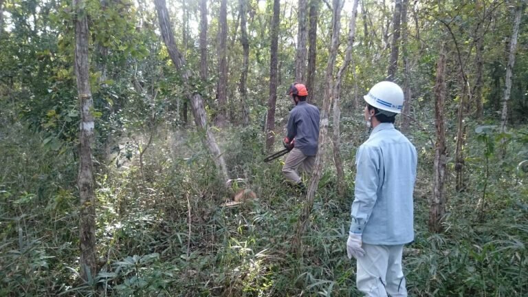 枯死木は健全木が密集する場所から離れた場所にあり、人力での運搬が困難でした。