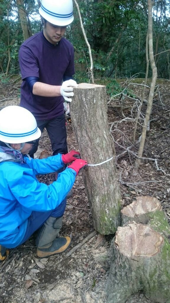作業は演習林に勤務する高木先生主導のもと、職員だけでなく先生の研究室の学生さんと一緒に行いました。