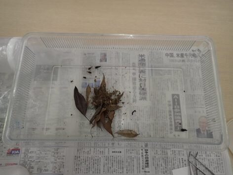 モニタリングサイト1000の調査では72時間トラップを設置し、昆虫を採集します。トラップには昆虫以外にも土やリターが入ることがあるので、これらと昆虫を分別し、昆虫はモニタリングサイト1000ネットワークセンターに送ります。