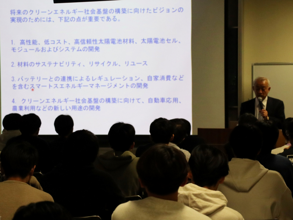 豊田工大から山口真史名誉教授をお招きし、「太陽電池の現状と未来への期待」についてご講演いただきました。