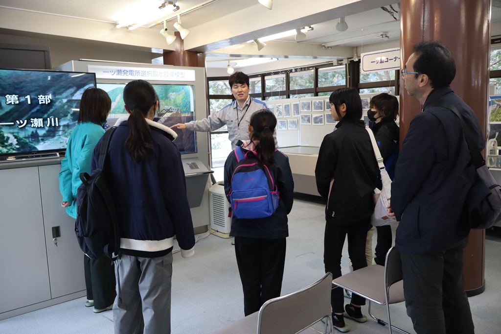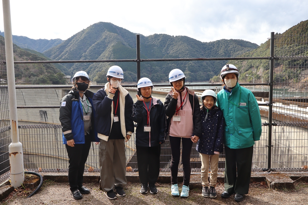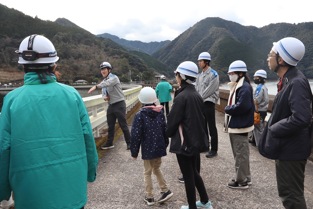 一ツ瀬ダムの見学では、ダムの成り立ちや完成までの流れ、仕組みを学んだ後、実際にダムの上を歩きながら社員の方の説明を受け、大きさに驚く声やダムの役割に興味津々な様子が伺えました。
