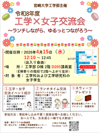 工学部主催にて開催する、女子交流会のご案内です。