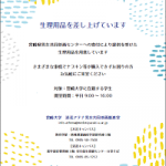 2021年6月4日 / 最終更新日時 : 2021年6月10日 清花アテナスタッフ お知らせ 学生の皆さんへ~生理用品を配布しています さまざまな理由で生理用品を入手できずに困っている学生の皆さんへ、ナプキン等を無償で提供しています。 提供するのは宮崎県男女共同参画センターへ寄附されたものの一部で、学生の皆さんが少しでも足を運びやすいよう大学内で預かって […]