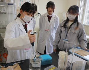 次世代育成の一環として、宮崎県内の女子高校生(1、2年生)を対象とした「女子高校生のためのサイエンス体験講座in宮崎大学」を開催しています。3月上旬に実施される宮崎県立高校入試の日程に合わせて開催するもので、例年定員を大きく上回る参加申し込みが寄せられます。