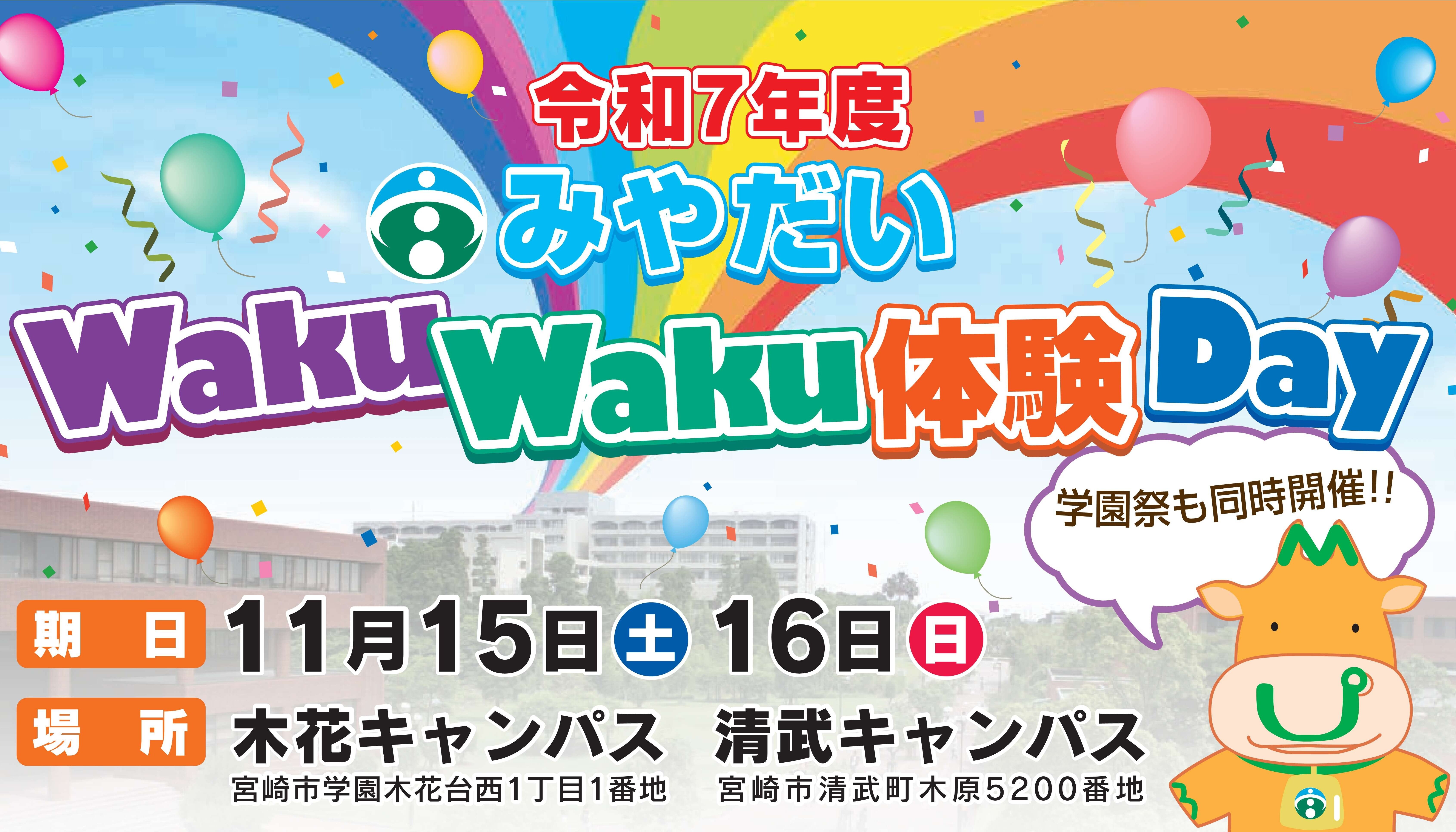 4 | 親子で参加する工学部キャンパスツアー | 令和8年3月29日 | 13:00-16:00 | 工学部 | 中学生・高校生とその保護者、高校教員を対象に工学部って何?宮崎大学の特徴は何?どのような研究が行われているの?など様々な疑問に、工学部の研究室見学などを通じてお答えします。 ※要事前予約 |