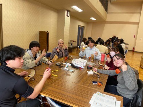 「先週の木曜日、西米良村へ研学旅行に行きました。大学から西米良村まではやや距離があり、移動にはおよそ二時間かかりました。バスに乗って四十分ほど経った頃、私はすでに到着したと思っていましたが、そこは山に入る前の最後のコンビニでした。先生から、飲み物など必要なものをここで購入しておくよう説明がありました。その後、さらに一時間ほど移動し、西米良村に到着しました。 到着後、まず西米良村の人口や食生活についての説明を聞きました。村の人々の多くは自給自足の生活をしており、野菜などは自分たちで栽培して食べているそうです。肉や日用品などは、移動販売の店や近隣の市街地のスーパーで購入することが多いとのことでした。 昼食には、とても上品で日本らしい料理をいただきました。ご飯には多くのきのこが混ぜられており、香りがよく、とても美味しかったです。ただ、私は生魚があまり得意ではなく、友人に譲りました。生の食べ物は食感に違和感を覚えてしまい、心理的に少し苦手です。寿司も、火の通ったものやエビは好きですが、生のものにはまだ慣れていません。 午後は、先生の指導のもとで「ほおずき小灯し」を制作しました。植物の葉を外観に用い、木製の台座と組み合わせた小さな灯りで、素朴で印象的な作品でした。 その後、温泉に入る時間が設けられていましたが、私は男女混浴ではないかと心配し、タオルを持っていなかったため、入浴を見送りました。後になって友人から男女別であると聞き、少し後悔しました。 物産館では、西米良村で生産された米を使った焼酎を見つけ、祖父へのお土産として購入しました。店員の方々はとても親切で、飛行機に持ち込むと伝えると、瓶が割れないように何重にも丁寧に包装してくださり、さらに袋まで用意してくださいました。祖父への贈り物だと知ると「優しいですね」と言ってくださいましたが、私はむしろ、そこまで気を配ってくださった店員の方々こそが優しいと感じました。 今回の西米良村での体験は、地域の暮らしや文化に直接触れることができる、非常に実りの多い経験でした。このような貴重な機会を与えてくださった先生方に、心より感謝いたします。」