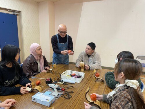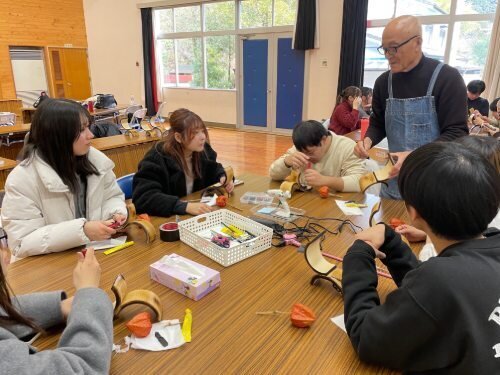 当日は、地域学部によるゼミ発表を見学したほか、西米良村の特産である「ほおずき」を用いたランプ制作を体験しました。また、村内の温泉に入るなど、地域の文化や暮らしに触れる活動を通して理解を深めました。