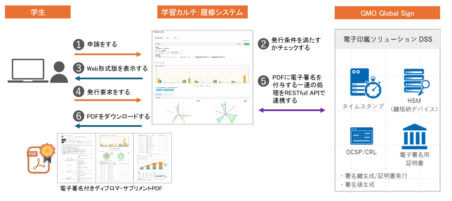 本学のディプロマ・サプリメントは、GMOグローバルサイン株式会社の「電子印鑑ソリューションDSS」と連携しています。