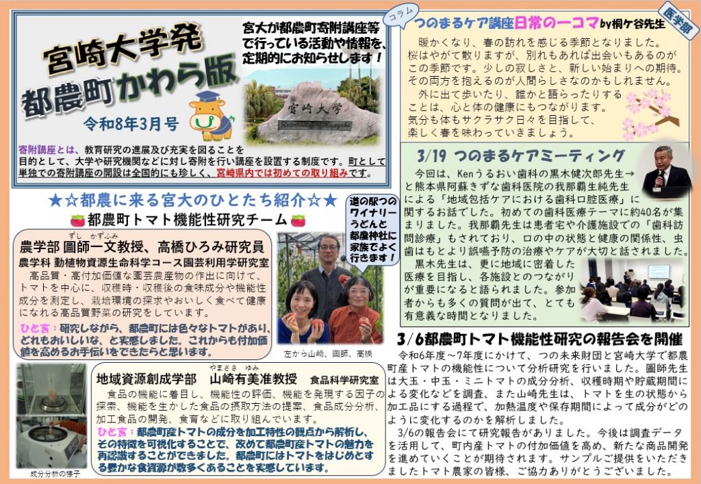 宮崎大学発都農町かわら版3月号を発行しました。