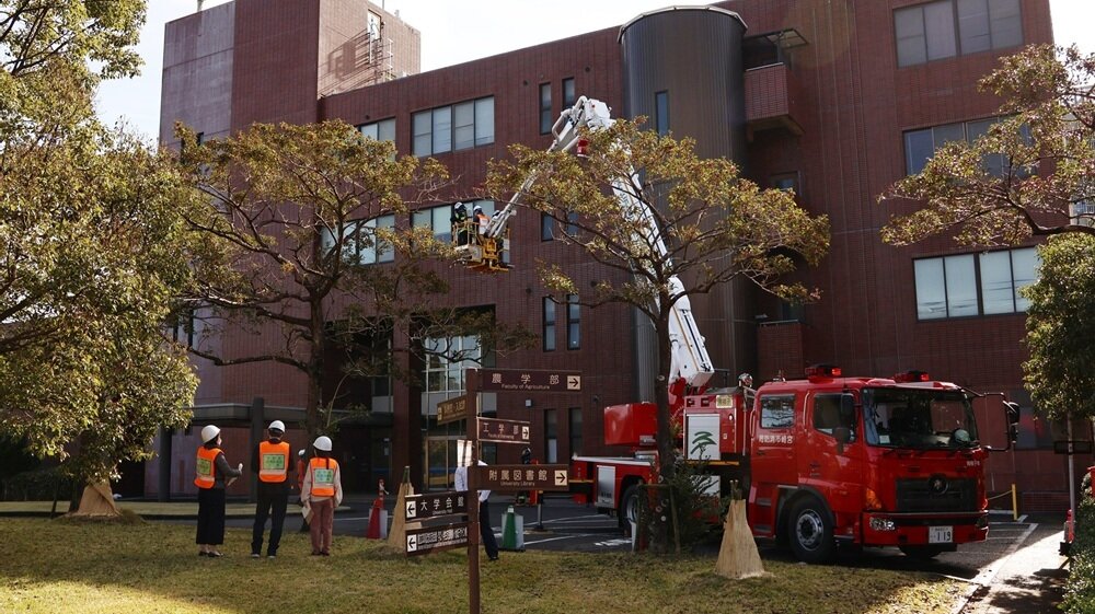 2025年12月9日(水)、本学の学生・教職員の防災意識の高揚を図るため、木花キャンパスにおいて自衛消防訓練を実施しました。