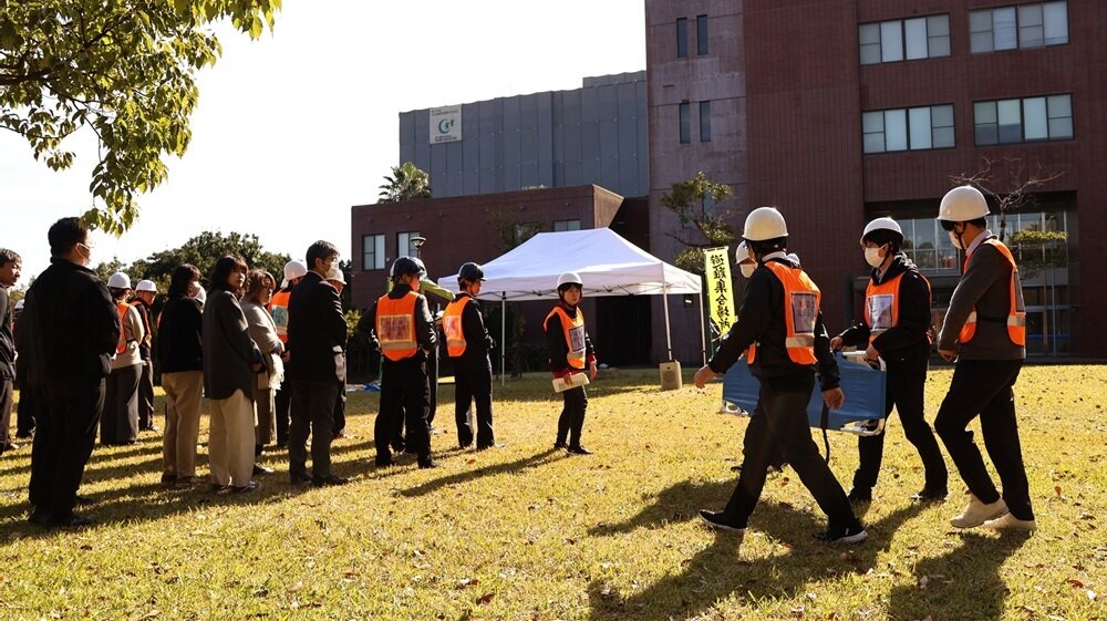 自衛消防訓練前日の2025年12月8日(火)には、青森県で最大震度6強の地震が発生し、気象庁から北海道・三陸沖後発地震注意情報が発令され、現在も余震の心配がされる状況にあります。宮崎県も日向灘沖を震源として発生する可能性がある南海トラフ地震等への警戒が必要です。この地震はおおむね100~150年間隔で繰り返し発生しており、最近発生した昭和東南海地震(1944年)及び昭和南海地震(1946年)から約80年が経過している現在、次の大規模地震の発生が懸念されています。本学としましては、今後も定期的に訓練等を実施し、防災意識向上を図るとともに、万が一の緊急事態にも適切に対応できるように努めてまいります。
