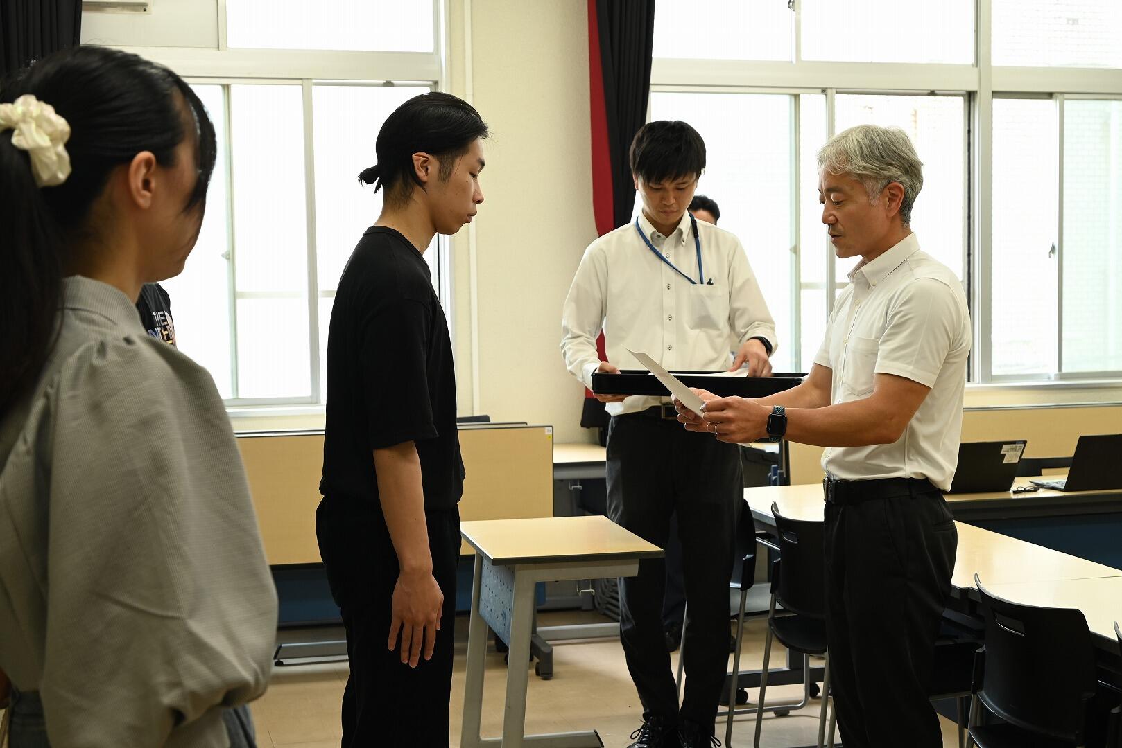 2024年6月27日(木)、特定サイバー防犯ボランティアの委嘱状交付式・合同研修会が宮崎大学にて行われ、宮崎県警サイバー防犯対策課の皆さんが立ち会う中で、宮崎県警察本部生活安全部サイバー戦略局サイバー捜査課課長の牧田幸二氏が工学部の新規学生ボランティア5名に対して委嘱状を交付しました。