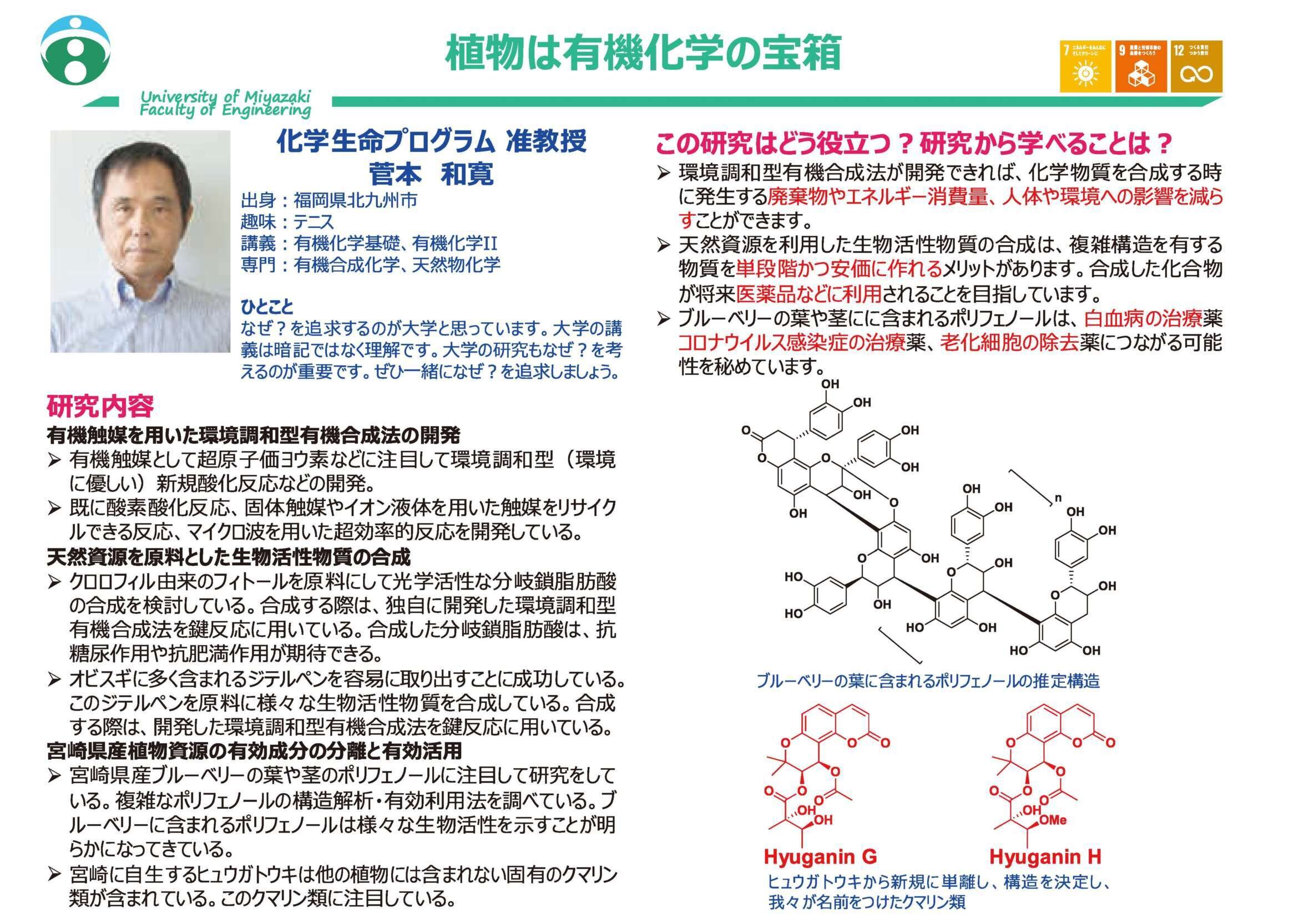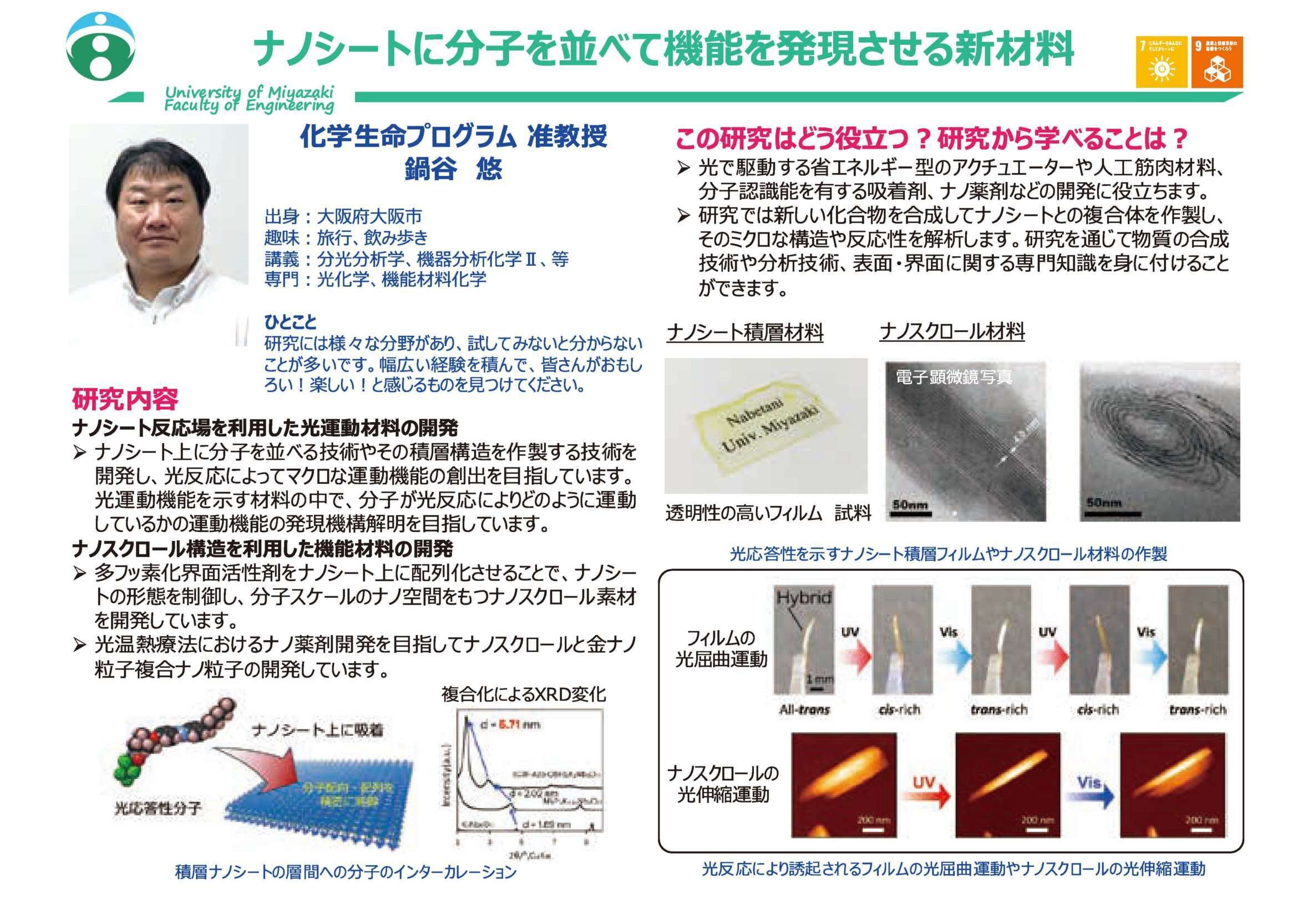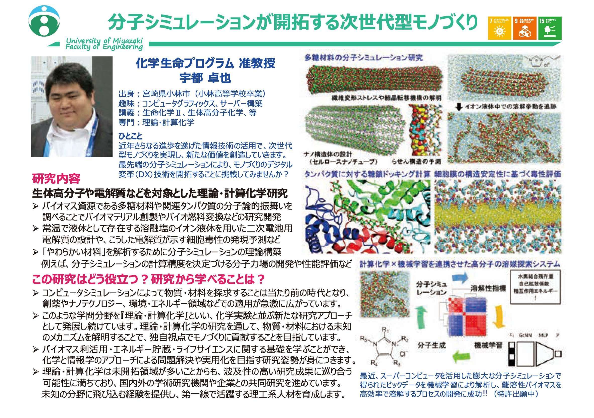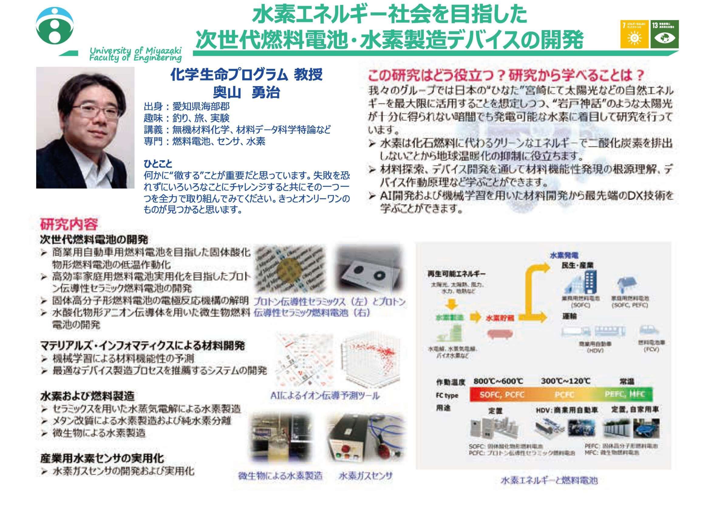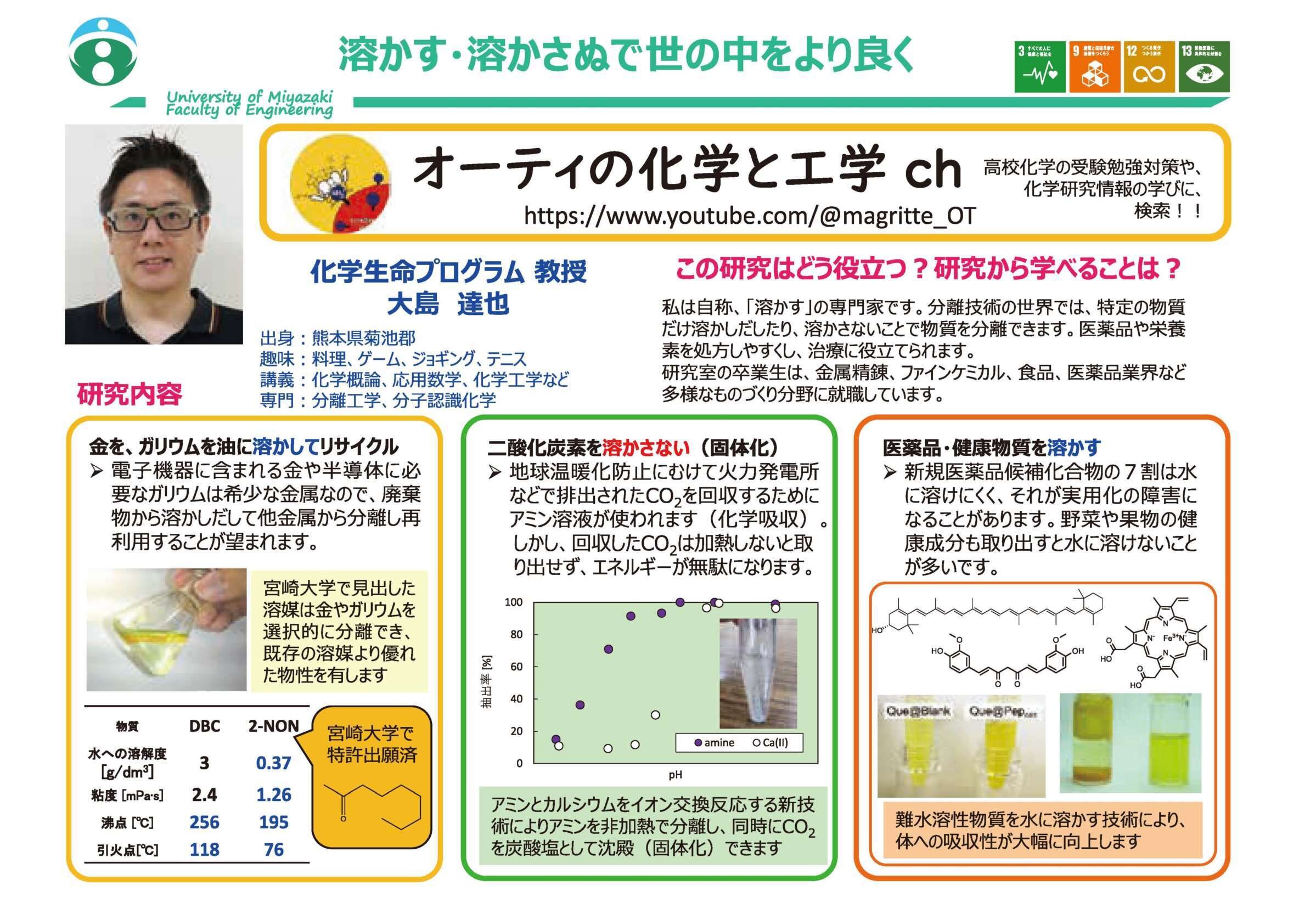 すべて 化学生命プログラム 土木環境プログラム 半導体サイエンスプログラム 電気電子システムプログラム 機械知能プログラム 情報通信プログラム 工学基礎教育センター 化学生命プログラム 稲田 飛鳥 化学生命プログラム 2025.10.01 ペプチドを利用した高度機能性材料の開発 研究の世界はアイデア勝負!誰もがヒラメキひとつで世界一になる可能性を秘めています。大学で研究の基礎を学んで世界一を目指しましょう! 化学生命プログラム 井澤 浩則 化学生命プログラム 2025.10.01 地球環境にやさしい高分子材料をつくる バイオマス資源から高分子材料をつくる研究を行っています。研究を通して地球環境や人々の建康に貢献したいと考えています。 化学生命プログラム 大島 達也 化学生命プログラム 2025.10.01 溶かす・溶かさぬで世の中をより良く 私は自称、「溶かす」の専門家です。分離技術の世界では、特定の物質だけ溶かしだしたり、溶かさないことで物質を分離できます。医薬品や栄養素を処方しやすくし、治療に役立てられます。研究室の卒業生は、金属精錬、ファインケミカル、食品、医薬品業界など多様なものづくり分野に就職しています。 化学生命プログラム 奥山 勇治 化学生命プログラム 2025.10.01 水素エネルギー社会を目指した次世代燃料電池・水素製造デバイスの開発 何かに‘‘徹する”ことが重要だと思っています。失敗を恐れずにいろいろなことにチャレンジすると共にその一つ一つを全力で取り組んでみてください。きっとオンリーワンのものが見つかると思います。 化学生命プログラム 酒井 剛 化学生命プログラム 2025.10.01 エネルギー・環境関連材料の開発と高性能化 エネルギー変換材料やエネルギー貯蔵材料は、今後ますます必要とされ発展する分野ですが、材料そのものも奥深くて面白いし、自分で創れるところが魅力です。 化学生命プログラム 白上 努 化学生命プログラム 2025.10.01 水を原料とした人工光合成システムの構築 宮崎は太陽光エネルギーの利活用を研究する上では最適な場所です。みなさんも将来のエネルギー問題の解決を目指す研究の一躍を担いませんか? 化学生命プログラム 宇都 卓也 化学生命プログラム 2025.10.01 分子シミュレーションが開拓する次世代型モノづくり 近年さらなる進歩を遂げた情報技術の活用で、次世代型モノづくりを実現し、新たな価値を創造していきます。 最先端の分子シミュレーションにより、モノづくりのデジタル変革(DX)技術を開拓することに挑戦してみませんか? 化学生命プログラム 菅本 和寛 化学生命プログラム 2025.10.01 植物は有機化学の宝箱 なぜ?を追求するのが大学と思っています。大学の講義は暗記ではなく理解です。大学の研究もなぜ?を考えるのが重要です。ぜひ一緒になぜ?を追求しましょう。 化学生命プログラム 鍋谷 悠 化学生命プログラム 2025.10.01 ナノシートに分子を並べて機能を発現させる新材料 研究には様々な分野があり、試してみないと分からないことが多いです。幅広い経験を積んで、皆さんがおもしろい!楽しい!と感じるものを見つけてください。 化学生命プログラム 廣瀬 遵 化学生命プログラム 2025.10.01 SDGsの達成に向けた微生物のゲノム解析 生命科学は、特に発展が著しい分野です。また、環境問題は人類の喫緊の課題です。 生物の優れた機能を利用して持続可能な開発目標(SDGs)の達成に取り組みましょう。 化学生命プログラム 松永 直樹 化学生命プログラム 2025.10.01 アルカリ型燃料電池用電極触媒の開発と磁性材料の低温合成 大学時代の生活習慣や研究への取り組み方が、社会人での土台になって活かされると考えています。 化学生命プログラム 松根 英樹 化学生命プログラム 2025.10.01 化学によるナノ材料の創生と応用 不思議なことに、研究は取り組んでいる研究者の個性が現れます。たとえ、同じ研究テーマでも、しばしば人によって異なった成果にたどり着きます。もし機会があれば大学での研究に従事して、皆さん自身を表現してみてください。 1 2 TOPに戻る