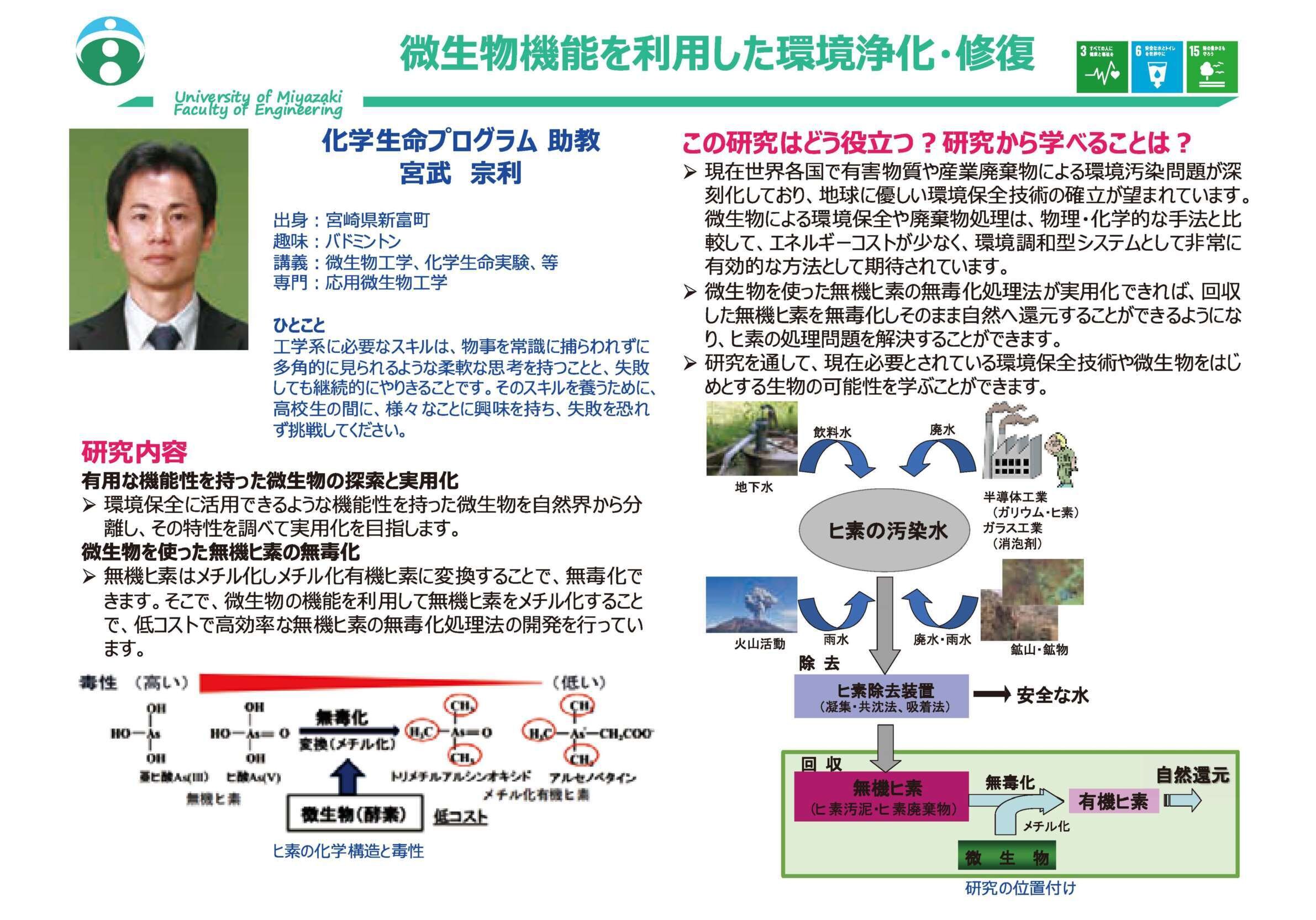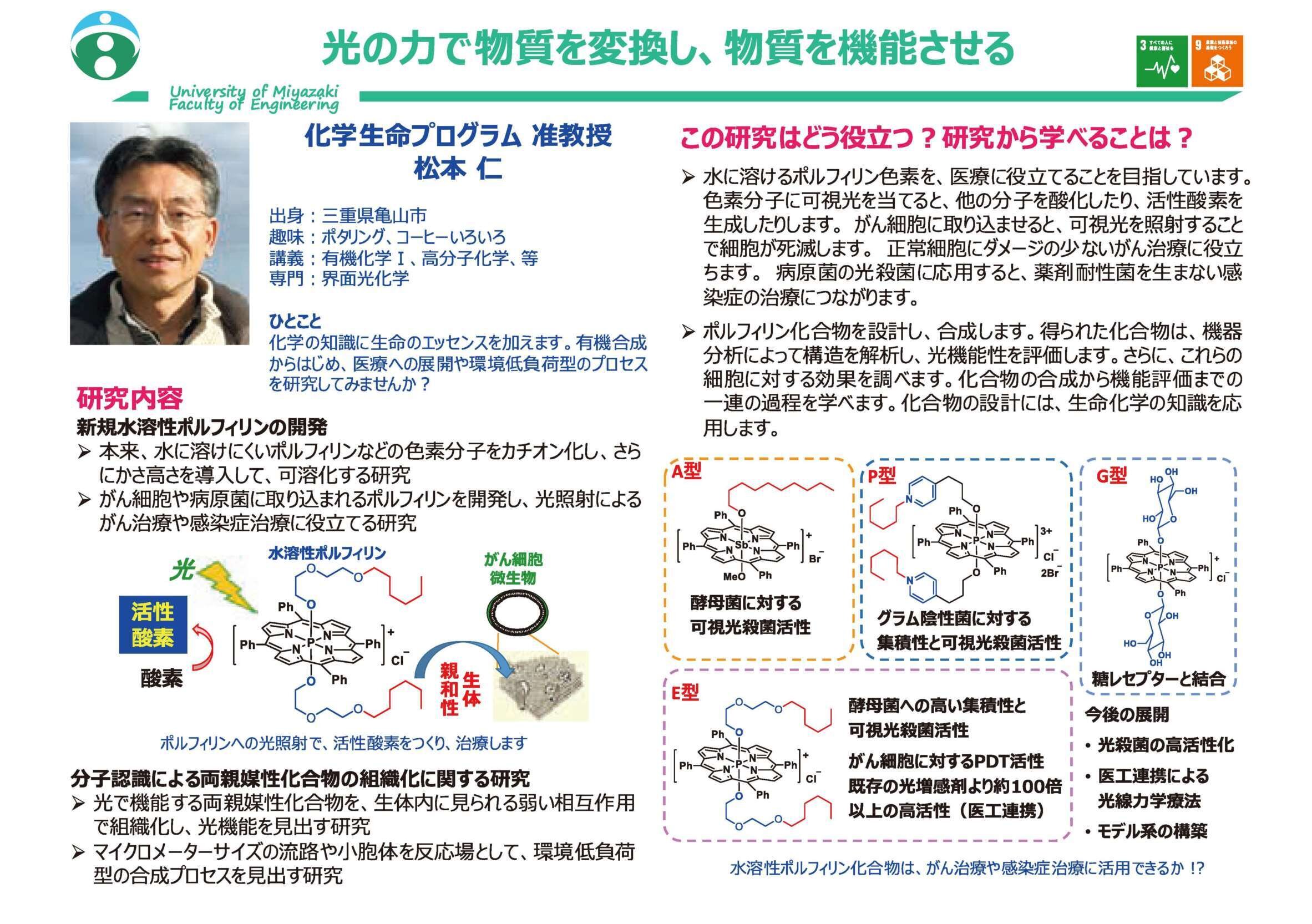 すべて 化学生命プログラム 土木環境プログラム 半導体サイエンスプログラム 電気電子システムプログラム 機械知能プログラム 情報通信プログラム 工学基礎教育センター 化学生命プログラム 松本 仁 化学生命プログラム 2025.10.01 光の力で物質を変換し、物質を機能させる 化学の知識に生命のエッセンスを加えます。有機合成からはじめ、医療への展開や環境低負荷型のプロセスを研究してみませんか? 化学生命プログラム 宮武 宗利 化学生命プログラム 2025.10.01 微生物機能を利用した環境浄化・修復 工学系に必要なスキルは、物事を常識に捕らわれずに多角的に見られるような柔軟な思考を持つことと、失敗しても継続的にやりきることです。そのスキルを養うために、高校生の間に、様々なことに興味を持ち、失敗を恐れず挑戦してください。 1 2 TOPに戻る
