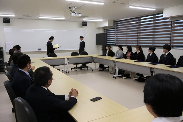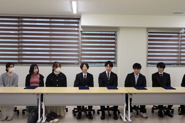 工学部及び工学研究科の学生表彰は令和3年度から設けており、年間を通して前期と後期の2回行われ、成績優秀者及び研究、サークル活動または地域貢献等の諸活動で顕著な活躍をした者⼜は団体等を表彰するもので、今回の表彰式では令和7年度後期に研究活動や学生活動などで顕著な活躍をした在学生11名(工学部学生2名、工学研究科学生9名)が表彰されました。