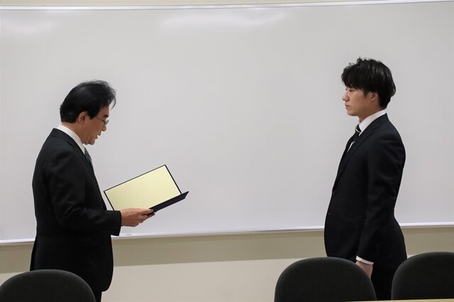 表彰式では、鈴木祥広工学部長・工学研究科長から各受賞者に表彰状が授与され、「皆さんのさらなる活躍を期待しています」と激励のお言葉を述べられました。